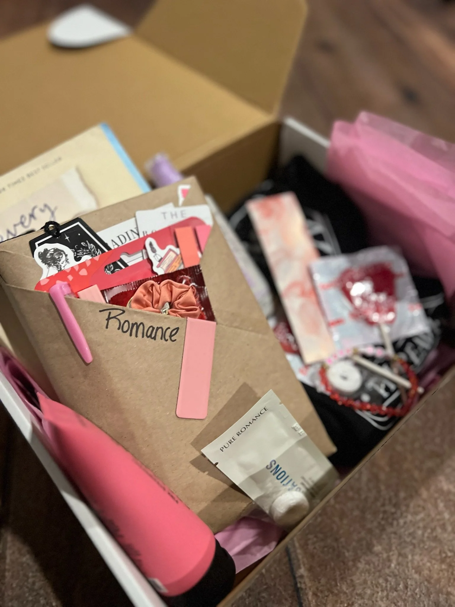 Each Blind Date with a Book with vary. You will receive a brand new book of your genre choice and a variety of self care items ( face mask, eye mask, etc) Book marks, annotation items and more!